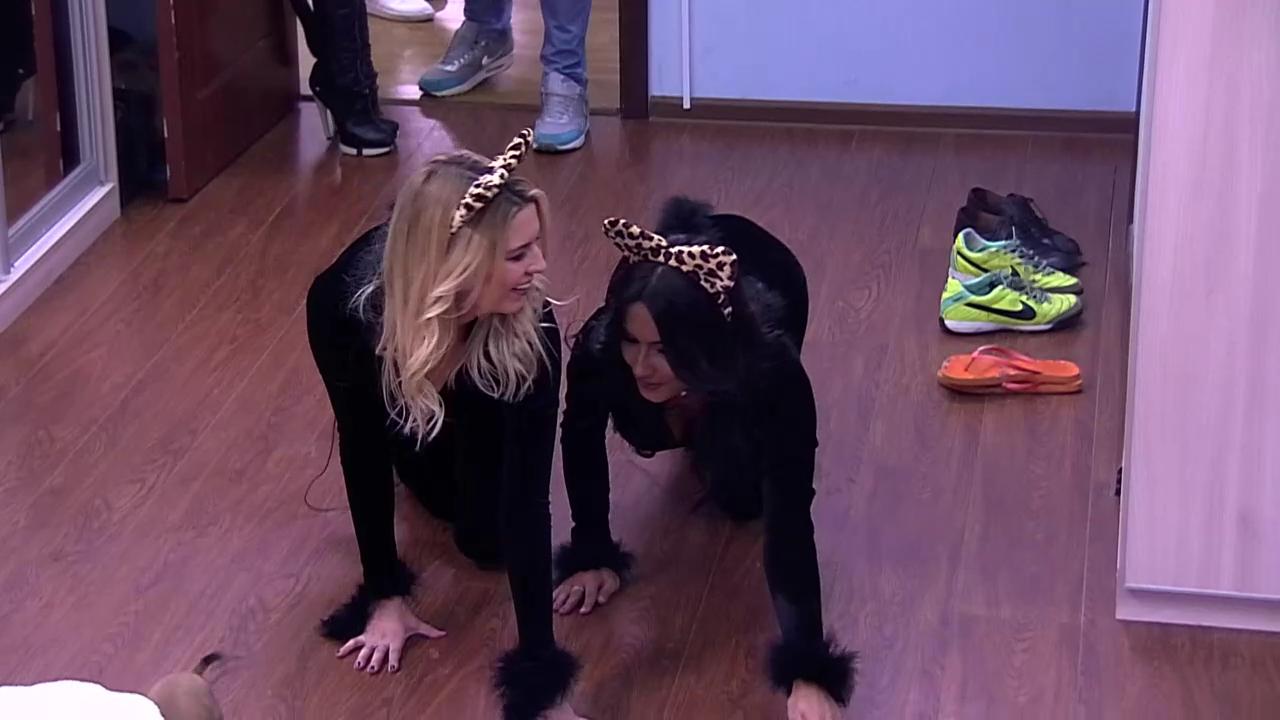 При заселении в дом запускают кошку, вот Майя с Элен в костюмах кошек первыми зашли в комнату. Надя сказала Ване, что Майя его бывшая кошечка, Элен будущая, а рядом с ним мышка Ира. #дом2#скандалы#интриги#трэш
