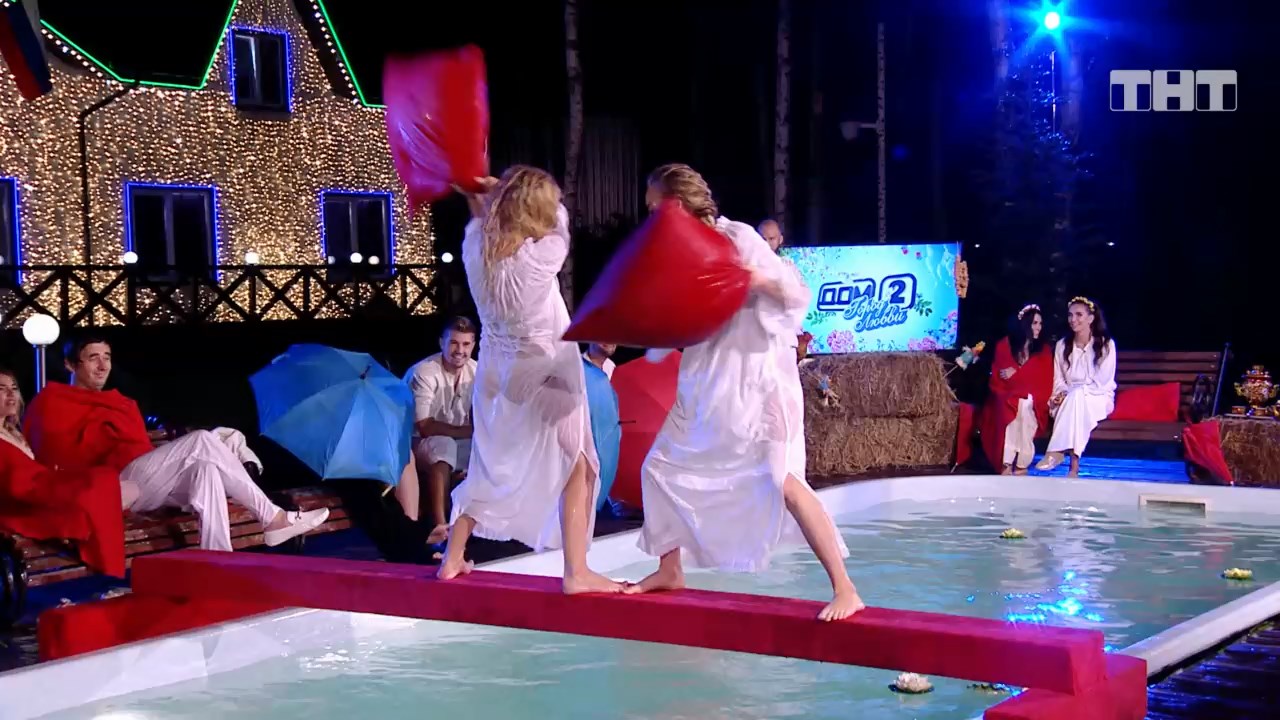 Сергей Кучеров провел соревнования для девушек. Девочки бились на подушках, стоя на бревне, которое лежало на бортиках бассейна. Настя Ендальцева билась с Марго, победила Марго. Две самые сильные участницы Милена и Марго бились друг с другом, победила Милена. #дом2 #трэш #отношения #после_заката