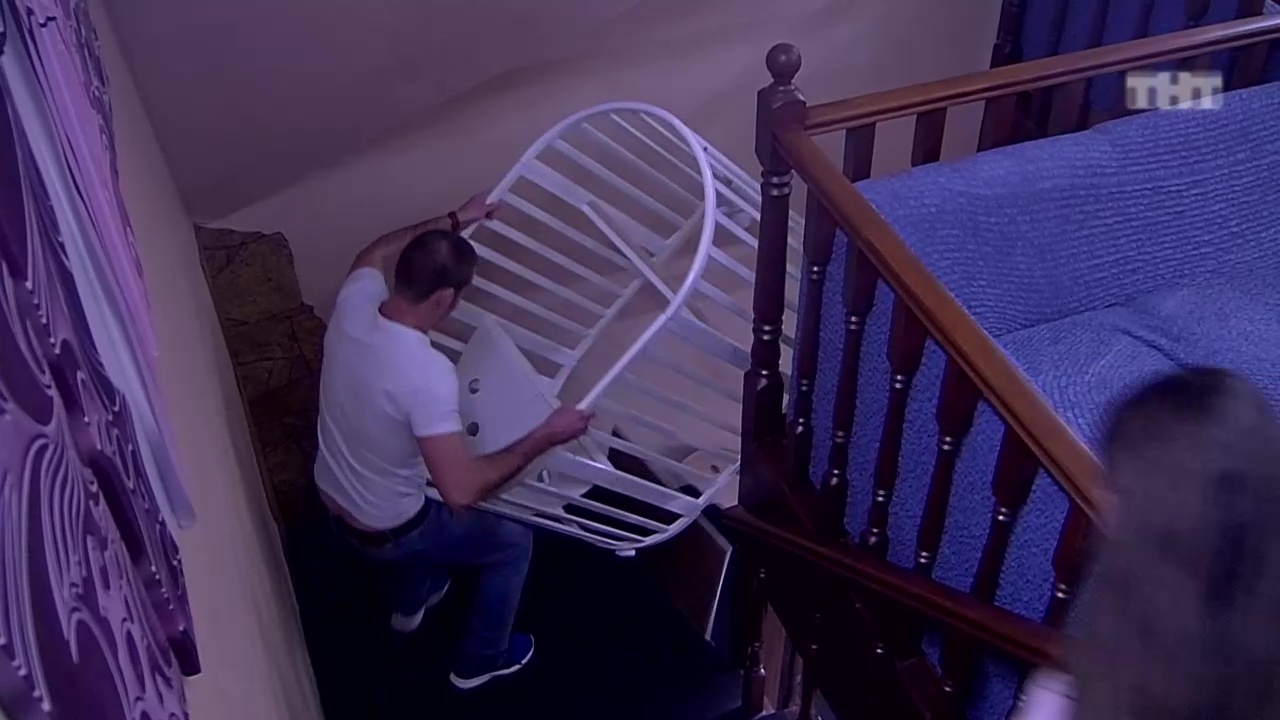 Кирилл Щетинин хватает кроватку и пытается спустить ее на первый этаж. Ольга бежит за ним и кричит, что кроватка стоит 30 тысяч. Щетинин не удерживает кроватку и та катится вниз по лестнице. У Рапунцель начинается истерика, она выбегает жаловаться ребятам и зовет на помощь. #дом2 #скандалы #интриги #трэш #город_любви
