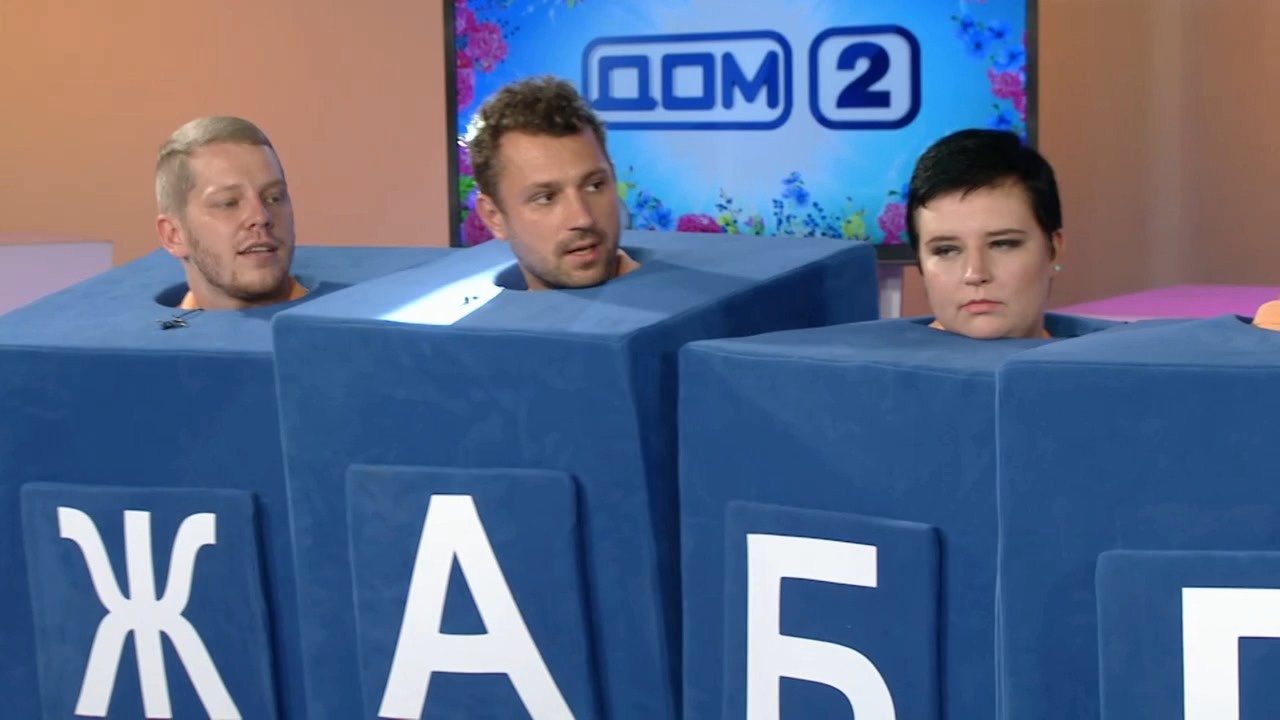 Команды, одетые в костюмы из кубиков с буквами, должны давать ответы на вопросы, выстраиваясь в нужном порядке. "Тухляки" справились с заданием за 2 минуты 22 секунды. #дом2#конкурс