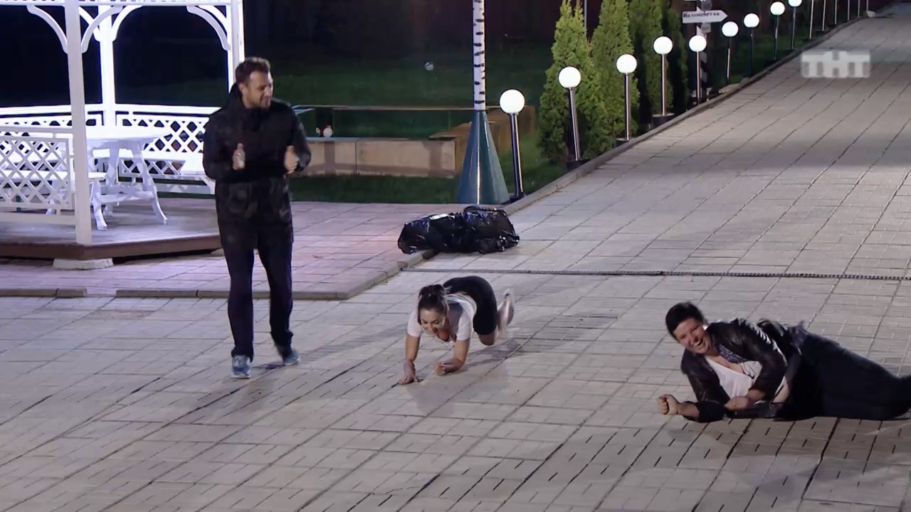 Никита Кузнецов провел конкурс Юлиане и Саше Черно. Девушкам предложили прыгать в мешках, а потом ползти к бассейну. Юлиана победила. В бассейне нужно было на скорость проплыть в круге, Саше все помогали. #дом2#конкурс