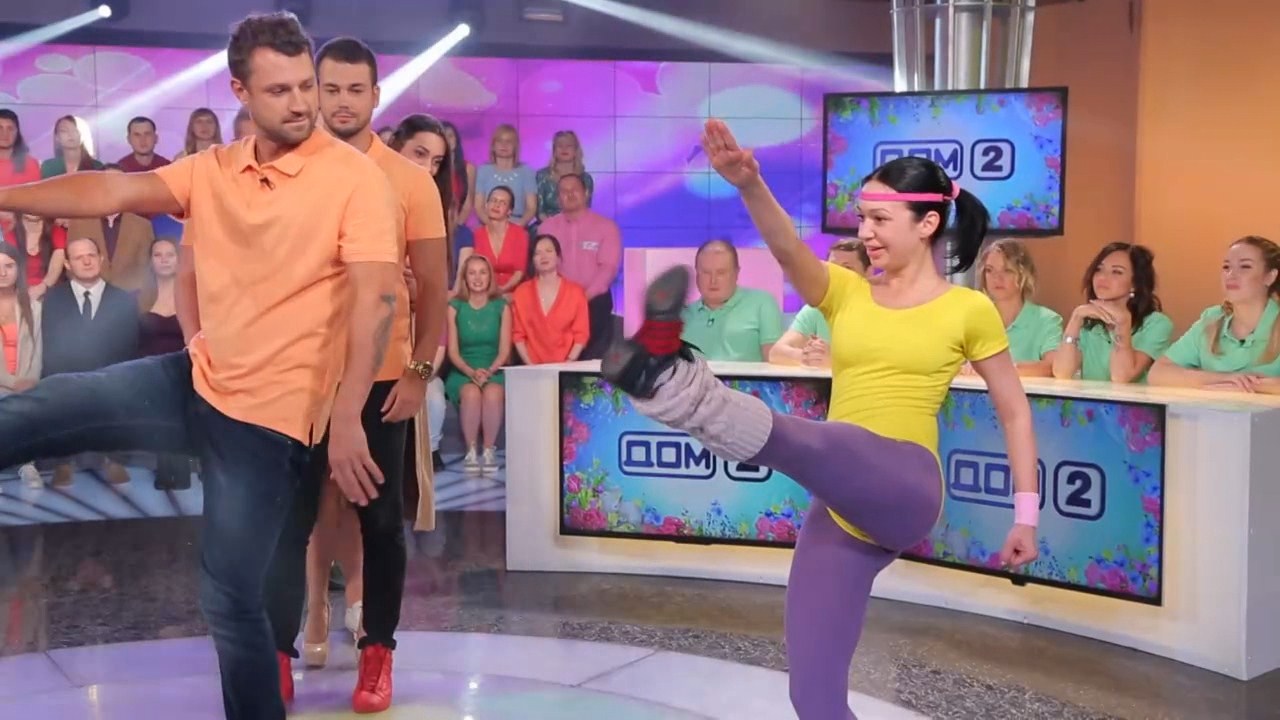 За 100 секунд команды должны дать как можно больше правильных ответов, повторяя при этом движения тренера по аэробике. Конкурс завершился со счётом 7:13 в пользу "Тухляков". #дом2#конкурс