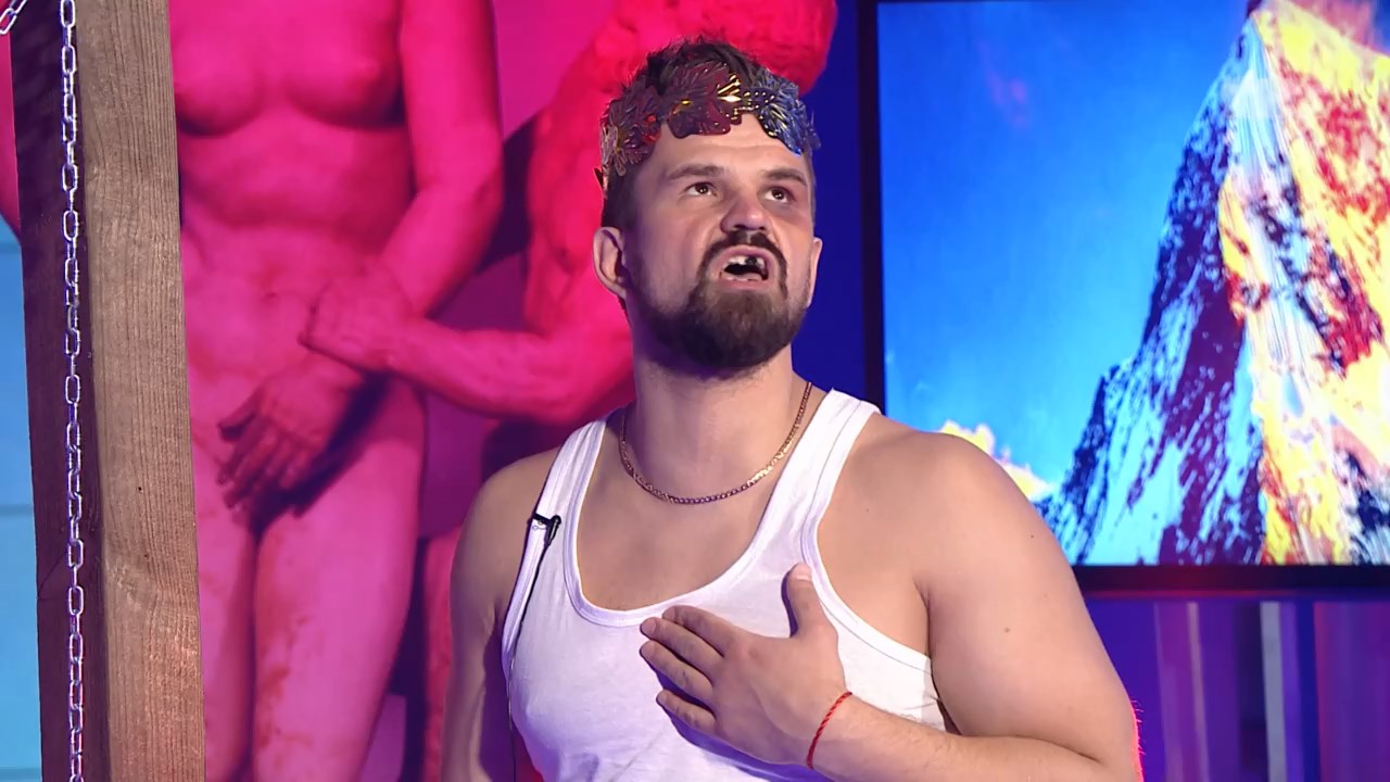 Следующая сценка была в постановке Дмитрия Лукина под названием "Пропитея." Марина сыграла Прометею, Майя Афродиту, Ирина Михайловна Афину. Лукин объявил, что у девушек вечеринка по поводу миллионного человека. #дом2 #творчество