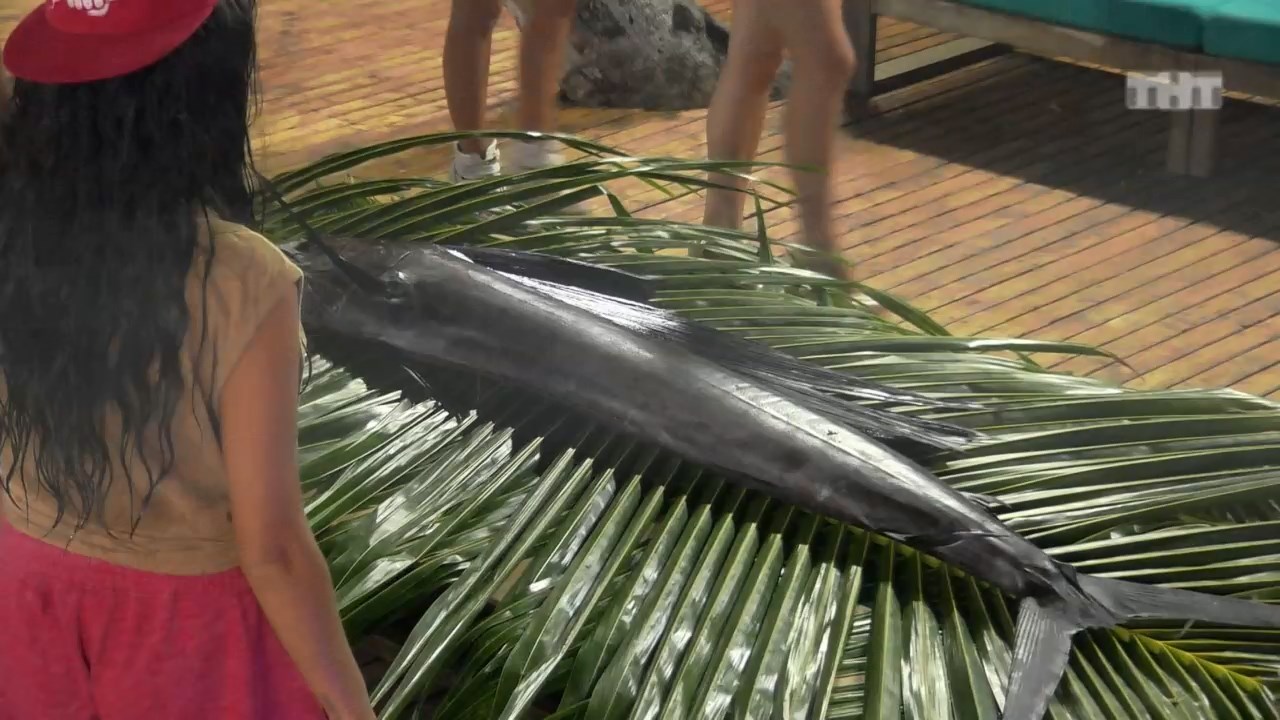 Катя Жужа приготовила подарок участникам, огромную рыбу и предложила парням ее разделать и приготовить. #дом2 #островлюбви