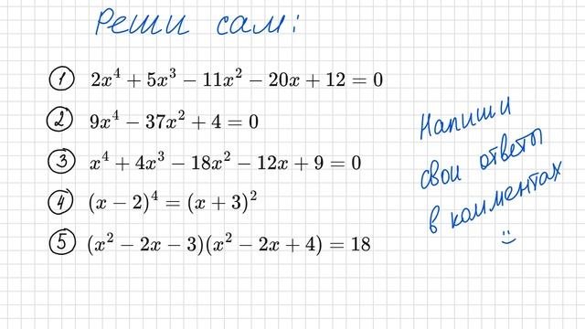 Реши сам Уравнения 4 степени