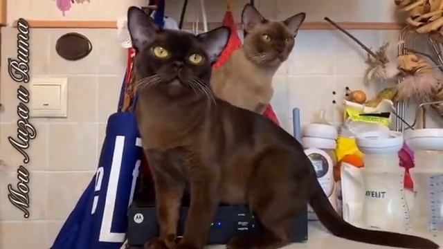 Соболиная бурманская кошка Элизабет и шоколадная Виолина. Питомник бурманских кошек Freya Way