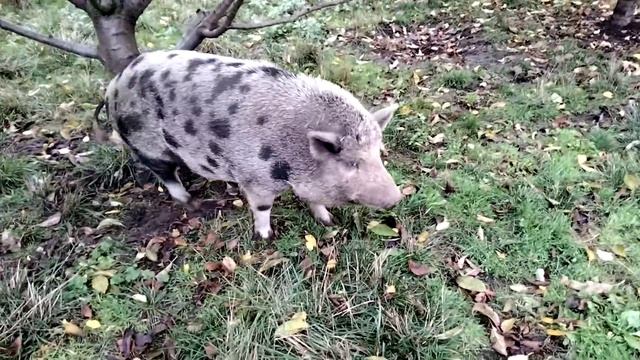 Хрюня чешется о дерево
