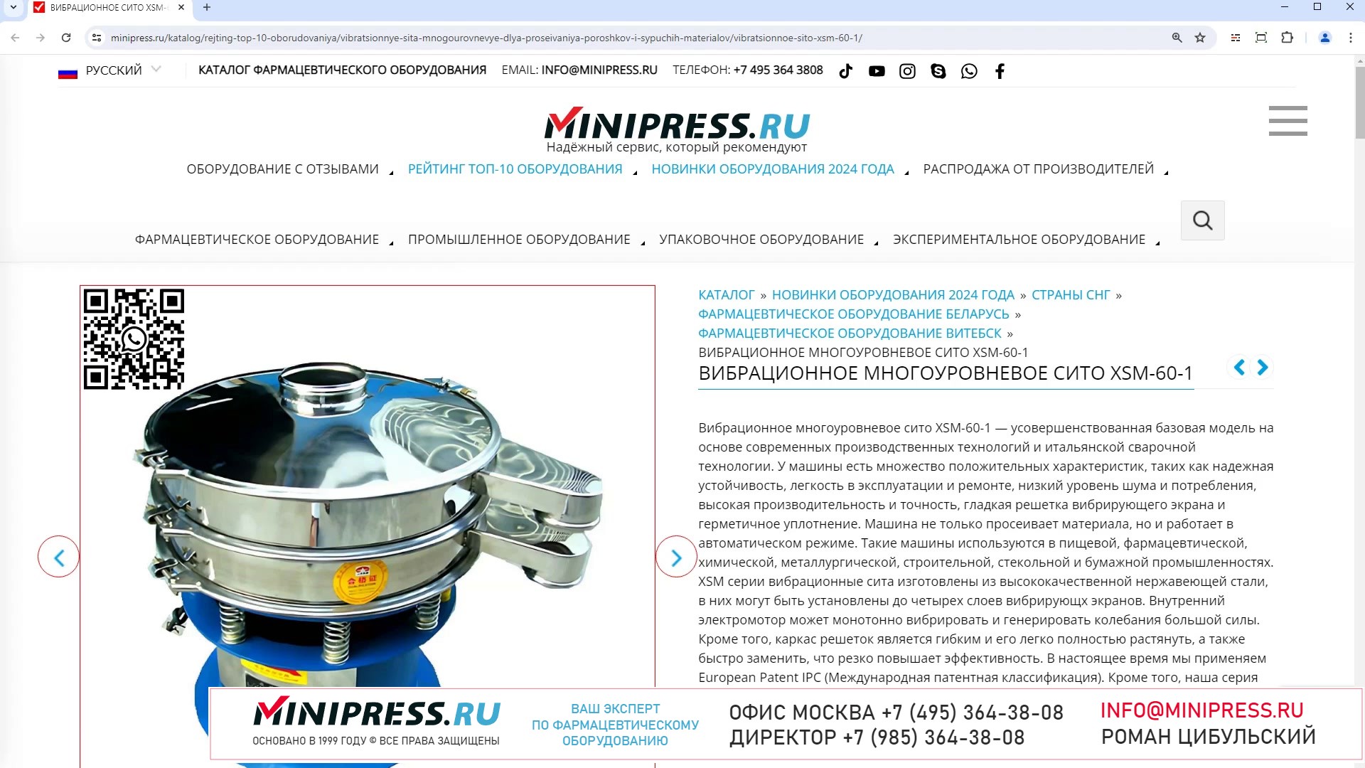 Minipress.ru Вибрационное многоуровневое сито XSM-60-1