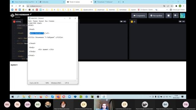 Урок 1. Введение в мир веб-разработки Предыдущий урок:https://youtu.be/N2DNSkg43p0 Следующий урок: https://youtu.be/jw3JXMgxcY8 Обучение в Малой Компьютерной Академии - https://online.top-academy.ru/junior_computer_academy Лучшая программа подготовки детей к будущему (по оценке ООН и ЮНЕСКО) 0:00 - создаем файл html 12:15 - разбираем код html 21:25 - регистрация в codepen.io 30:35 - структура файла 36:45 - заголовки html 46:40 - справочник html 1:01:08 - тег p и b
