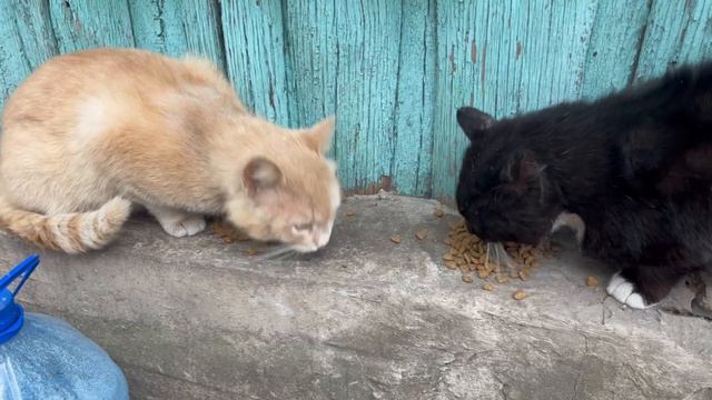 Соседские котики Мурчик и Барсик пришли поесть