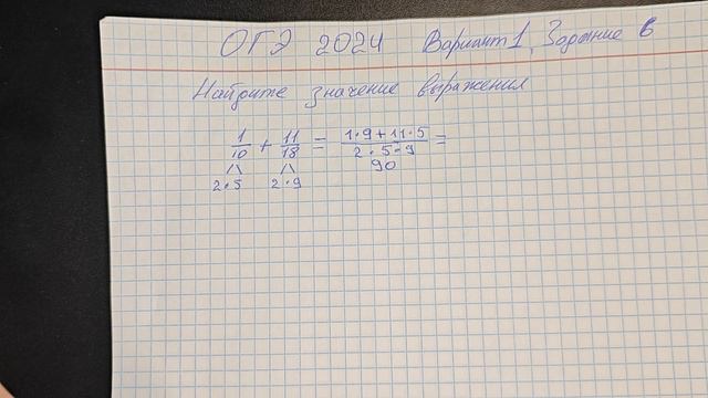ОГЭ 2024 вариант 1 задание 6 найдите значение выражения 1/10+11/18=32/45 но пишем в ответ 32