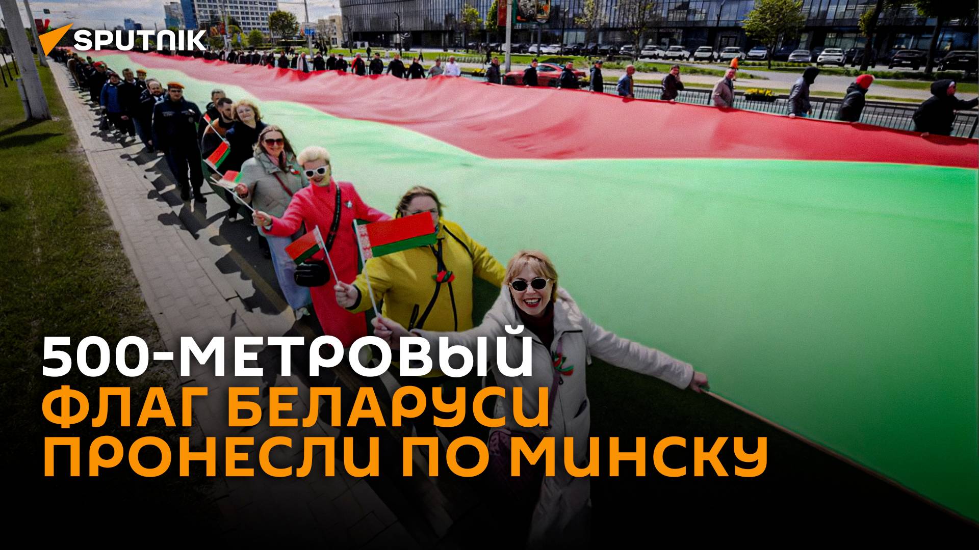 Государственный 500-метровый флаг Беларуси пронесли по Минску