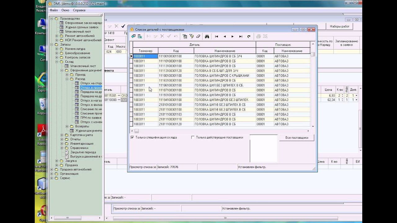 410017505703275 ЯНДЕКС.ДЕНЬГИ На развитие канала и покупку материалов Обучающие видео по работе с программой DMS. Полная автоматизация документа оборота для дилеров ОАО АВТОВАЗ, сдай отчетность без проблем. программа на 99% соответствует нормам и требованиям ОАО АВТОВАЗ. А так же с легкостью может быть адаптирована под автоцентры, СТО и др.Полный комплект программного обеспечения для автостанции. Консультации по d.melnik@asphltd.ru или по телефону (8482)759285