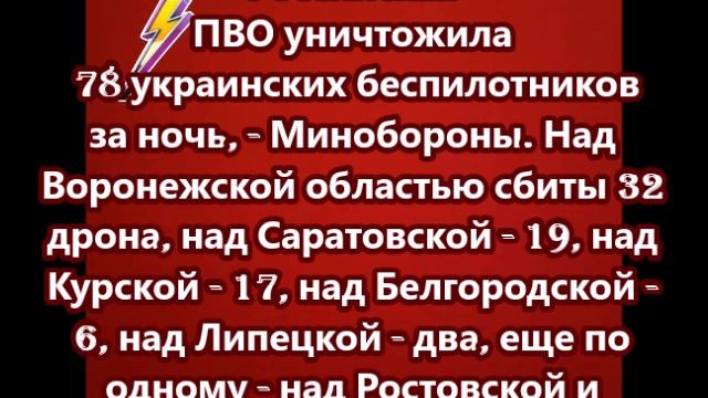 Российская ПВО уничтожила 78 украинских беспилотников за ночь