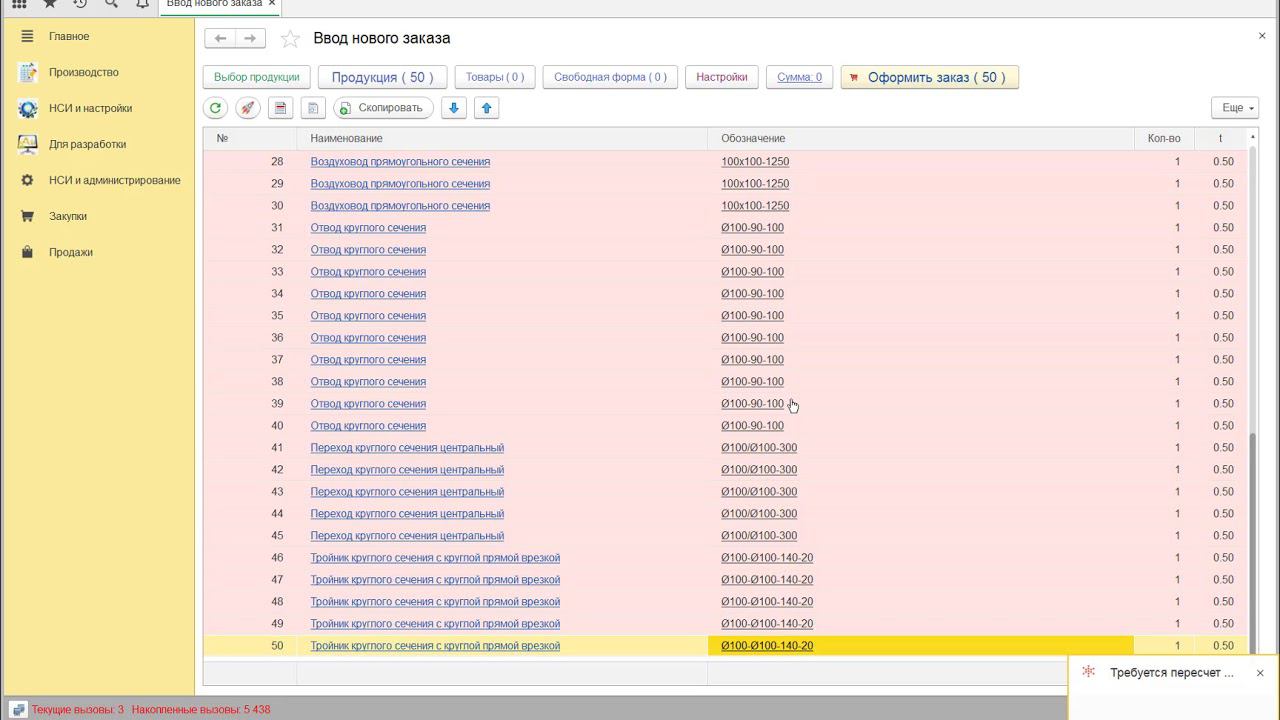 Заявка на воздуховоды - 50 позиций за 7 минут