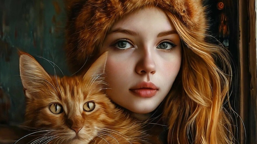 Классное видео о рыжем: Кот и красивая девушка. #животные