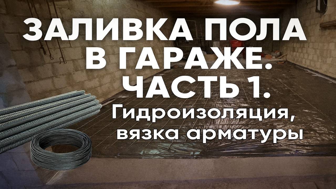 ЗАЛИВКА ПОЛА В ГАРАЖЕ. ЧАСТЬ 1. Гидроизоляция, вязка арматуры