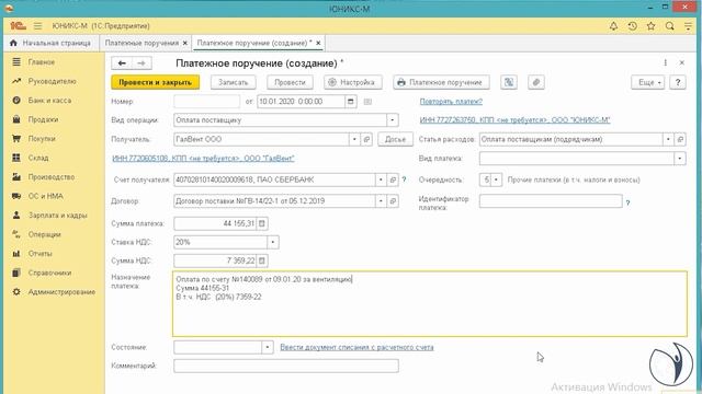 Оплата поставщику. Оформляем платежное поручение I Крысанова Анастасия. РУНО