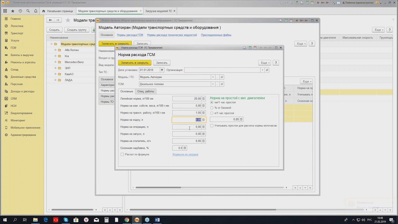 Учет работы автотранспорта, специальной техники, оборудования и механизмов в программе.-21.02.2019