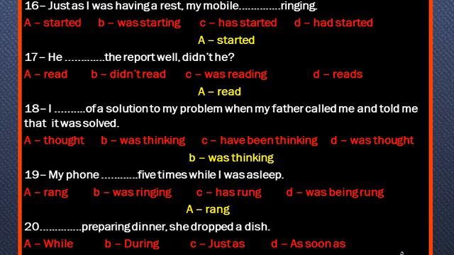 Test on Past (simple &continuous)تدريبات على زمنى الماضي البسيط والمستمر