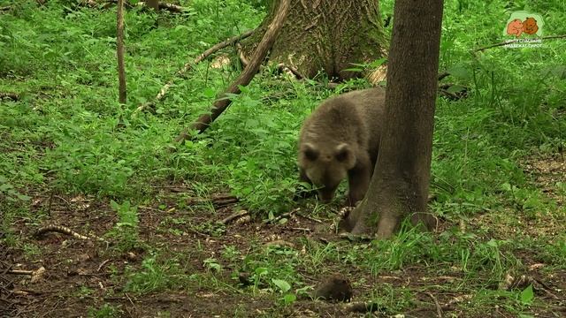 Красотка Кама уже гораздо спокойнее себя ощущает в своих лесных апартаментах – с огромным аппетитом поедает кашу, да и самостоятелно занимается поиском пропитания, с удовольствуем лакомясь корешками, да разной растительностью. Но при этом бдительности медвежья девочка не теряет – малейший незнакомый звук, и она уже настораживается! Повторимся, страх перед опасностью, в том числе и перед человеком, очень важен для благополучного выживания в природе. Центр спасения медвежат-сирот: orphan-bear.org