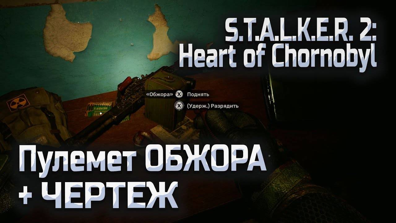 Где найти Пулемет ОБЖОРА и Чертёж арамидная подкладка для шлема Маска-1 00:00 - Радиация и зомби • В этом месте очень высокая радиация. • Облучение сильное. • Появляются зомби. 01:02 - Поиск артефактов • Артефактов нет. • Идут поиски нычки. • Находят рубильник и открывают дверь. 02:16 - Найденные предметы • За дверью находятся пулемёт "Обжора", патроны, энергетик и чертёж арамидной прокладки для шлема. • Решают не возвращаться и идут дальше. • Объясняют, как найти рубильник и открыть дверь.