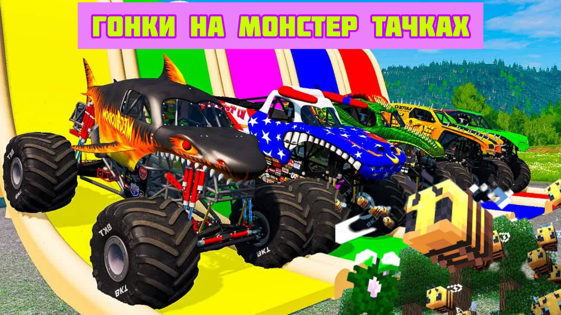 5 МОНСТРОВ СЪЕЗЖАЮТ С ГИГАНТСКОЙ ЦВЕТНОЙ ВОДНОЙ ГОРКИ - СИМУЛЯТОР BeamNG.drive