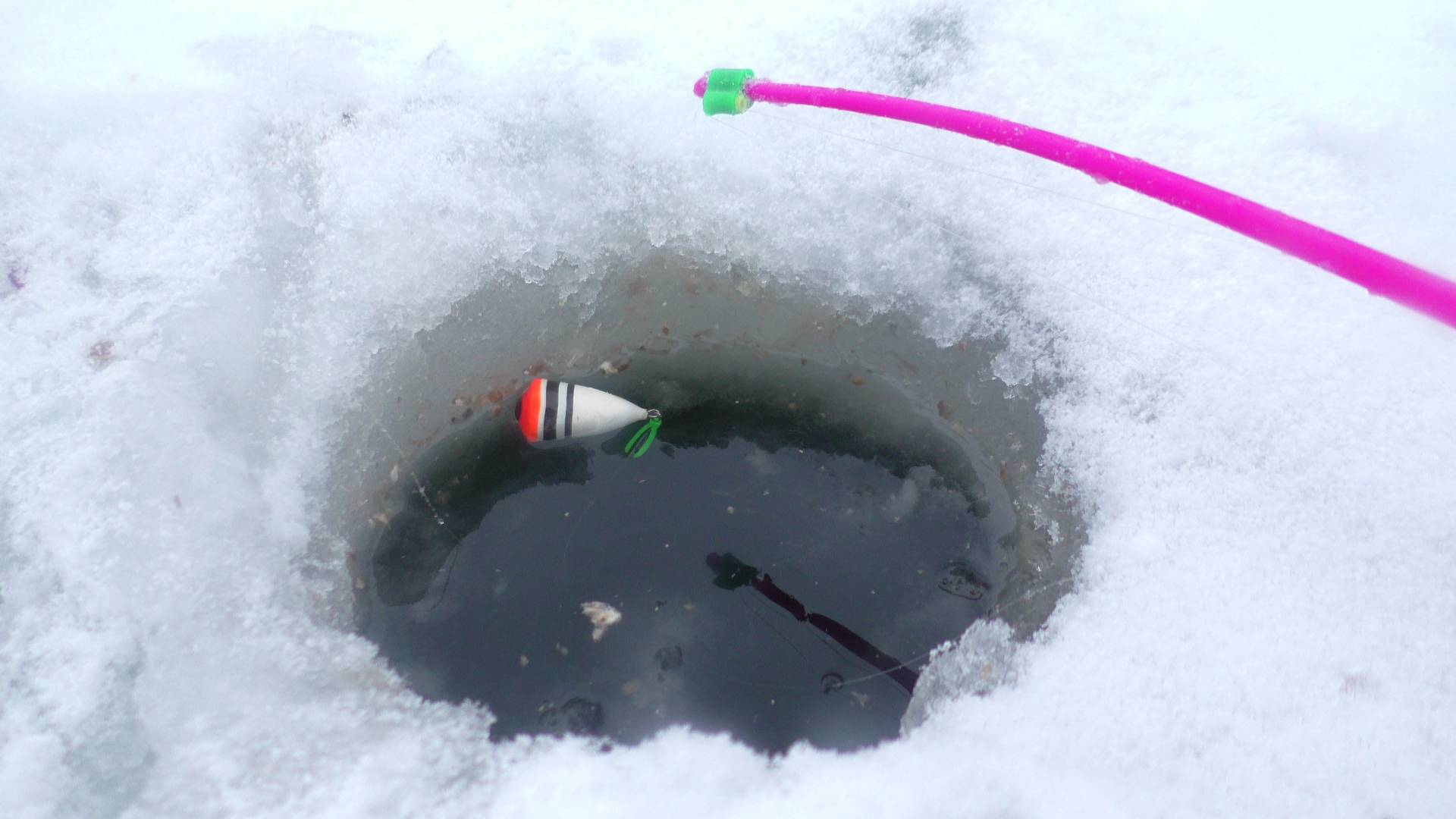 Опустил поплавок в лунку и он сразу же всплыл. Зимняя рыбалка