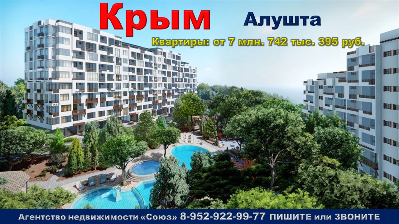 Подпишитесь на нас. Благодарим !!! https://www.youtube.com/@nedvigimoct/videos - мы на Ютубе https://dzen.ru/nedvigimoct?tab=longs&utm_referrer=dzen.ru - мы на Дзене https://rutube.ru/channel/27083000/videos/ - мы на Рутубе https://vk.com/club223108371 - мы в ВК https://ok.ru/lyubayan Агентство недвижимости «СОЮЗ» Покупайте: квартиру в Крыму. г. Алушта, п. Семидворье, ул. Красноармейская. Агент по новостройкам: 89529229977 Цены на квартиры точно такие же как и у застройщика. Квартиры продаются БЕЗ РИЭЛТОРСКОЙ КОМИССИИ !!!. Ст. квартиры: от 7 млн. 742 тыс. 395 руб. Ежемесячный платеж: 37 089 руб. при ставке 6% Площадь общая: 25,44 м2 - 26,73 м2 1к. квартиры: от 10 млн. 968 тыс. 324 руб. Ежемесячный платеж: 52 543 руб. при ставке 6% Площадь общая: 42,67 м2 - 72,96 м2 2к. квартиры: от 12 млн. 133 тыс. 973 руб. Ежемесячный платеж: 58 127 руб. при ставке 6% Площадь общая: 49,8 м2 - 66,08 м2 Срок сдачи: 4 кв. 2024 Срок выдачи ключей: 2 кв. 2025 Договор: ДДУ Тип дома: кирпично-монолитный Тип отделки: черновая Парковка: есть Потолки: 2,7 м. Преимущества:300 м до пляжа. Развитая инфраструктура. Банный комплекс и открытый бассейн. Большой выбор планировочных решений. Хвойный лес. Оздоровительные, спортивные и детские площадки. Описание комплекса:Жилой комплекс, окруженный крымскими соснами и горами, расположился в уединенном уголке города Алушта на Южном берегу Крыма. Проект сочетает в себе современное жильё и полный спектр курортной инфраструктуры. Комфортная транспортная доступность – прямая трасса в аэропорт Симферополь и в Керчь – на крымский мост по живописным дорогам Крыма. Алушта – это живописный курорт на черноморском побережье Крыма. Здесь уникальный мягкий и целебный микроклимат благодаря циркуляции воздушных масс с морского побережья и гор и множеству вечнозеленых хвойных насаждений. Излюбленное место отдыха и досуга жителей и гостей города ‒ это прогулочная набережная протяженностью 7 км с развлечениями для детей и взрослых. Чистейшие мелкогалечные пляжи с прозрачной водой, природным целебным кварцевым песком и постепенным заходом в море идеально подходят как для взрослых, так для малышей. В ЖК предусмотрены аквазоны, банный комплекс и медицинский сектор. Ресторанный сектор обслужит в любом удобном месте: у бассейна, у дома, во дворе в тени крымских сосен или на смотровой площадке. Оборудованы беседки-барбекю. Просто гуляя по хвойному парку, вы погружаетесь в климатолечение. Совершая пробежки по горным терренкурам, непринуждённо привыкаете к увеличению физических нагрузок. Если погода дождливая, позаниматься фитнесом можно в спортзале. Ну а йога-центр с видом на Крымские горы ‒ это изюминка комплекса.