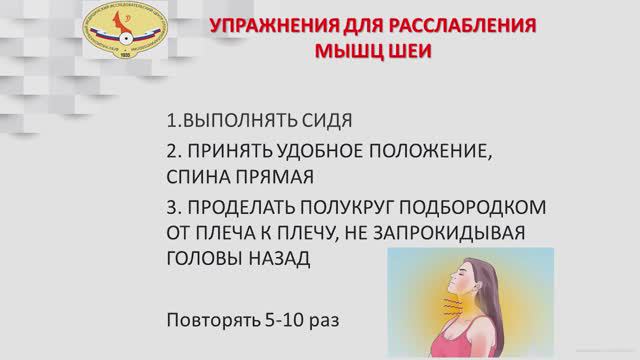 ПРОДЕЛАТЬ ПОЛУКРУГ ПОДБОРОДКОМ ОТ ПЛЕЧА К ПЛЕЧУ, НЕ ЗАПРОКИДЫВАЯ ГОЛОВЫ НАЗАД