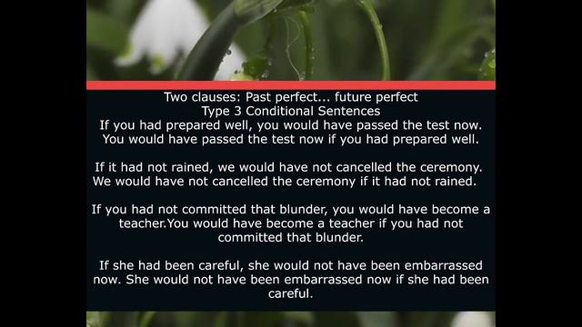 Like and subscribe, thanks in anticipation 😊🤗 Conditional type 3 Past Perfect Future perfect Sentences Unreal Past Situations English Grammar Top Practice Skills Live Stream English Grammar past Conditional Sentences Concepts Learn English Grammar, English Speaking Practice Top Practice Skills channel has Top Motivational Content and helps you with English Grammar, , Daily Life Emotional Issues, Job Tests Exams, PPSC FPSC, NTS Test , Top Papers, EverydayScience, Geography, World Info, Pakistan Studies, Important History dates, inventions, famous personalities, historical events, India Pakistan, World, current Affairs, Info about Countries, Top Papers MCQs, Tips for passing NTS Test, Jobs, Posts, Vacancies , English Grammar, Word Power vocabulary. Watch the videos again and again to memorize important information. Pass the job tests and exams . You can do it. Disclaimer: - This channel DOES NOT promote or encourage any illegal activities and all content provided by this channel is meant for EDUCATIONAL PURPOSE only. Under section 107 of the copyright Act 1976, allowance is made for FAIR USE for purpose such a as criticism, comment, news reporting, teaching, scholarship and research. Fair use is a use permitted by copyright statues that might otherwise be infringing. Non- Profit, educational or personal use tips the balance in favor of FAIR USE. Top Practice Skills / Learners Channel #LearnEnglish #GrammarQuiz #EnglishGrammar #EnglishTenses #Energy #Motivation #Education #EnglishSpeakingPractice #Training #Intelligence #Successfulmen #Happiness #Challenges #Success #Determination #EnglishSpeakingPractice
