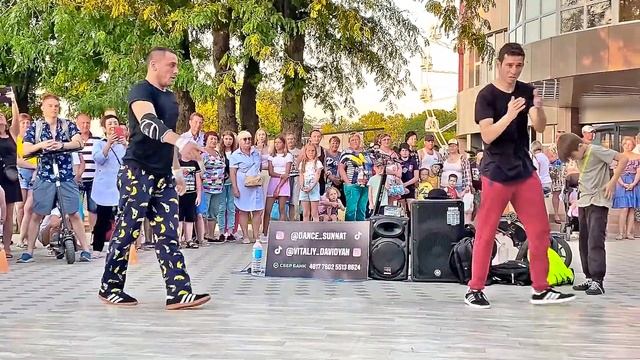 Суннат Давидян, Виталий Давидян, ученики и ученица выступают на Набережной в Анапе. Танцуют брейк.