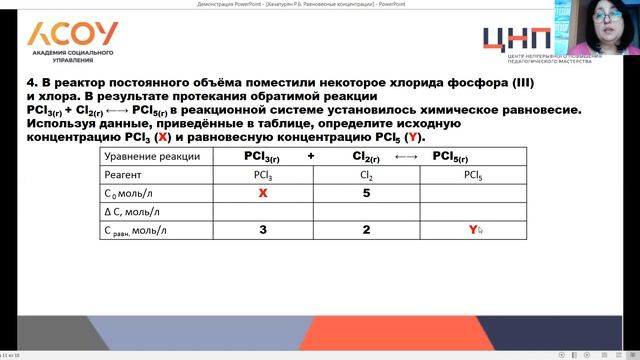 Тема: Разбор задания ЕГЭ на тему "Равновесная концентрация"