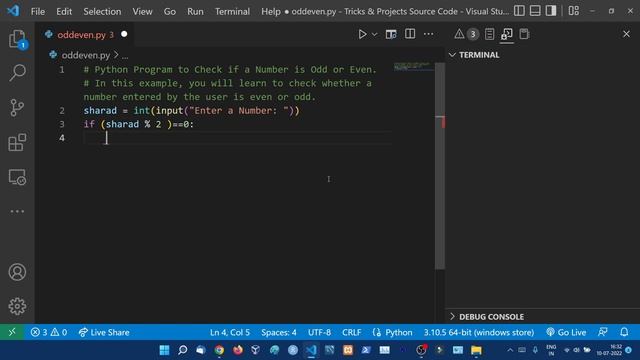 Python Program to Check if a Number is Odd or Even || Python Tutorial for Beginners in Hindi