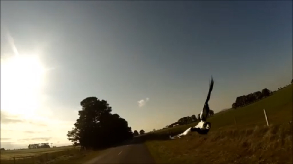 Птица берет на таран автомобиль