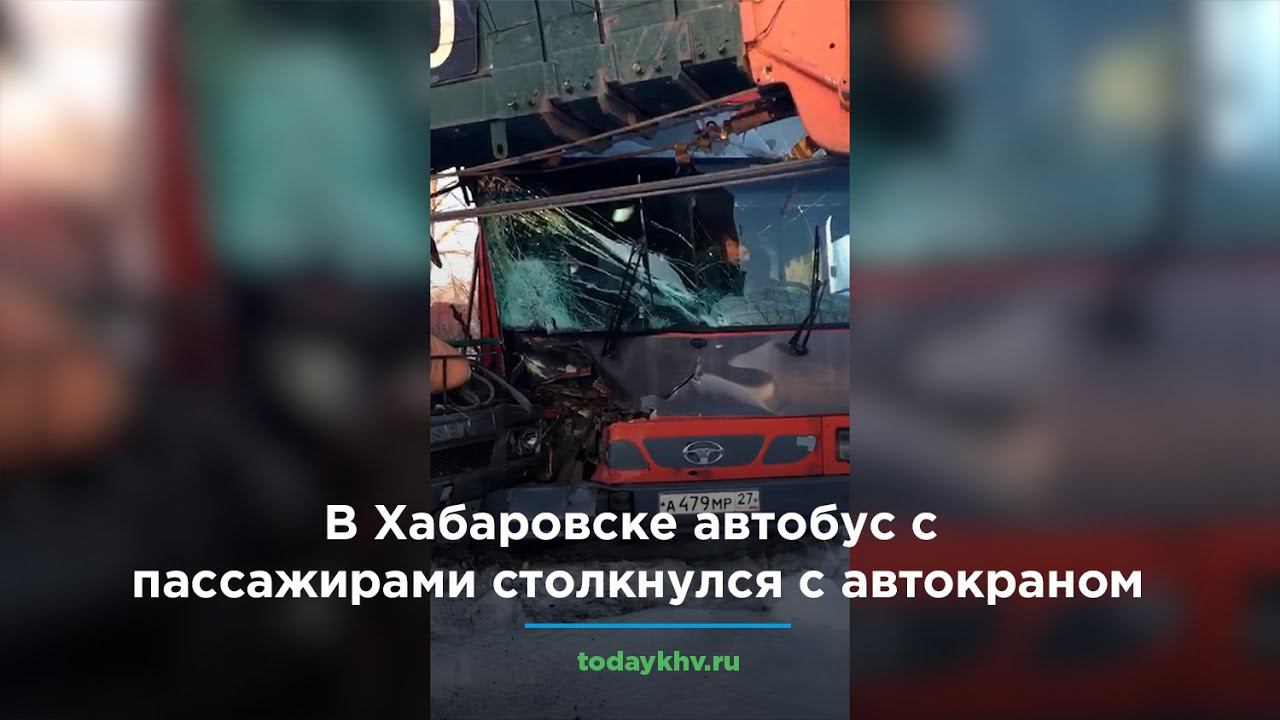 В Хабаровске автобус с пассажирами столкнулся с автокраном