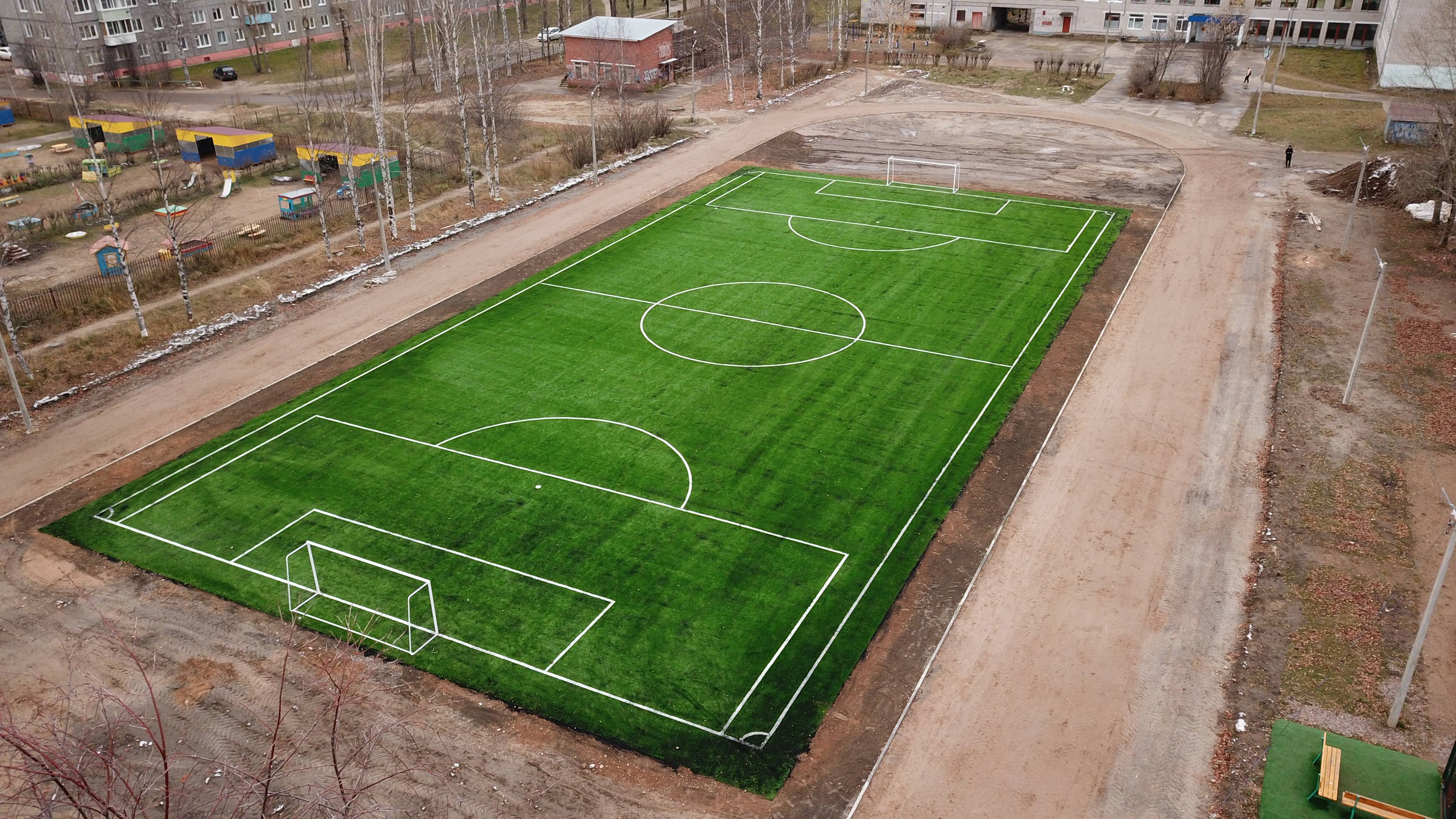 Футбольное поле 30х60. Газон DiaSport Standart M40 г. Коряжма ул. Архангельская 17. Школа №5