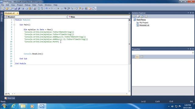 Dates and times are represented using special types (just like strings are) and deserve some attention. In this lesson we learn how to work with Date and Time data, how to create new instances of Date, how to add time; format the data for display and more. Furthermore, we discuss the TimeSpan class as a means of representing a duration of time.