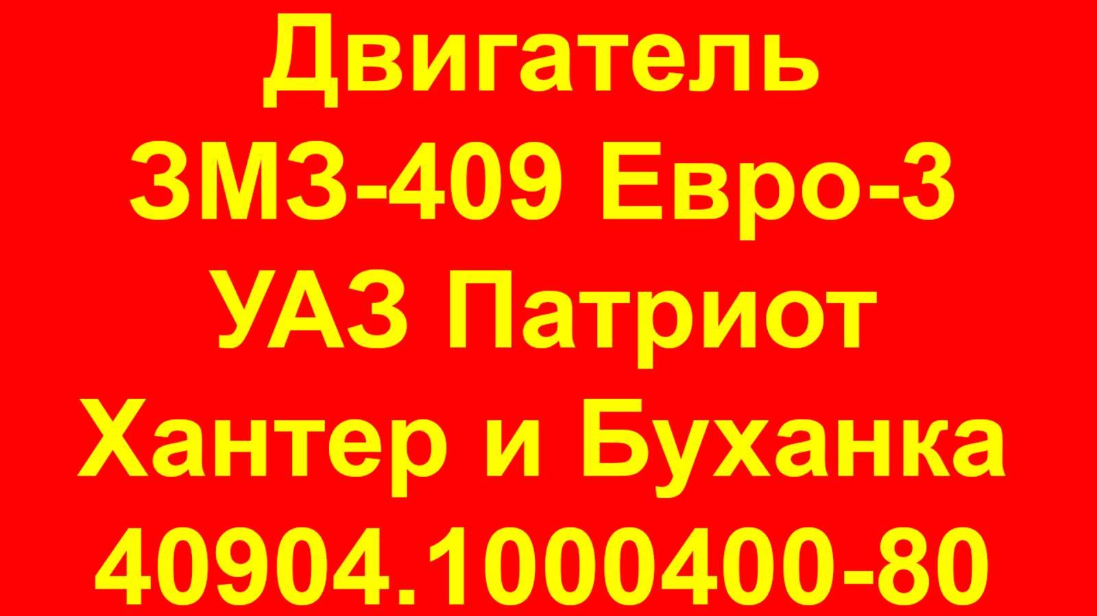 Двигатель ЗМЗ-409 Евро-3 для автомобиля УАЗ Патриот под кондиционер. 40904.1000400-80. Цена двигателя ЗМЗ-409 Евро-3 на УАЗ Патриот Хантер Буханка под кондиционер и где купить смотрите на странице: https://tent3302.ru/dvigatel-zmz-409/ Бензиновый двигатель ЗМЗ-40904.1000400-80 и его модификации, серийно выпускаются в промышленном производстве ОАО "ЗМЗ" с 2012 года. На двигателе применены датчик абсолютного давления, топливная рампа с форсунками двухпоточного распыления, оптимизированная крышка клапанов, система вентиляции с подачей картерных газов в ресивер и привод газораспределительного механизма зубчатыми цепями. Предназначен для установки на автомобили повышенной проходимости производства ОАО «УАЗ». Применяемость: легковые и грузопассажирские автомобили УАЗ Patriot, Hunter, Pickup, Cargo, Буханка. Автомобили УАЗ с двигателем ЗМЗ-40904.1000400-80 соответствуют требованиям Правил ЕЭК ООН № 83-05В (экологический класс Евро-3). Мотор ЗМЗ-409 Евро-3 под кондиционер на УАЗ Патриот Хантер Буханка. На нашем складе запчастей для автомобилей УАЗ Патриот Хантер Буханка Вы можете купить: Двигатель в сборе ЗМЗ 409, от производителя ПАО Заволжский моторный завод г. Заволжье, Россия, с каталожным номером 40904.1000400-80 , с артикулом производителя 40904.1000400-80 . Мотор 409 Евро-3 подходит на машины УАЗ: , Семейство Patriot, 316*, 2360, Хантер и Буханка. Купить можно только в Москве - самовывоз. С другими запчастями на Газель Вы можете ознакомиться на нашем сайте https://tent3302.ru/. Доставки в регионы нет. Исключительно самовывоз со склада. Москва. Угрешская ул., дом 17, стр.1, бокс №7. Всем добра и удачи на дорогах.