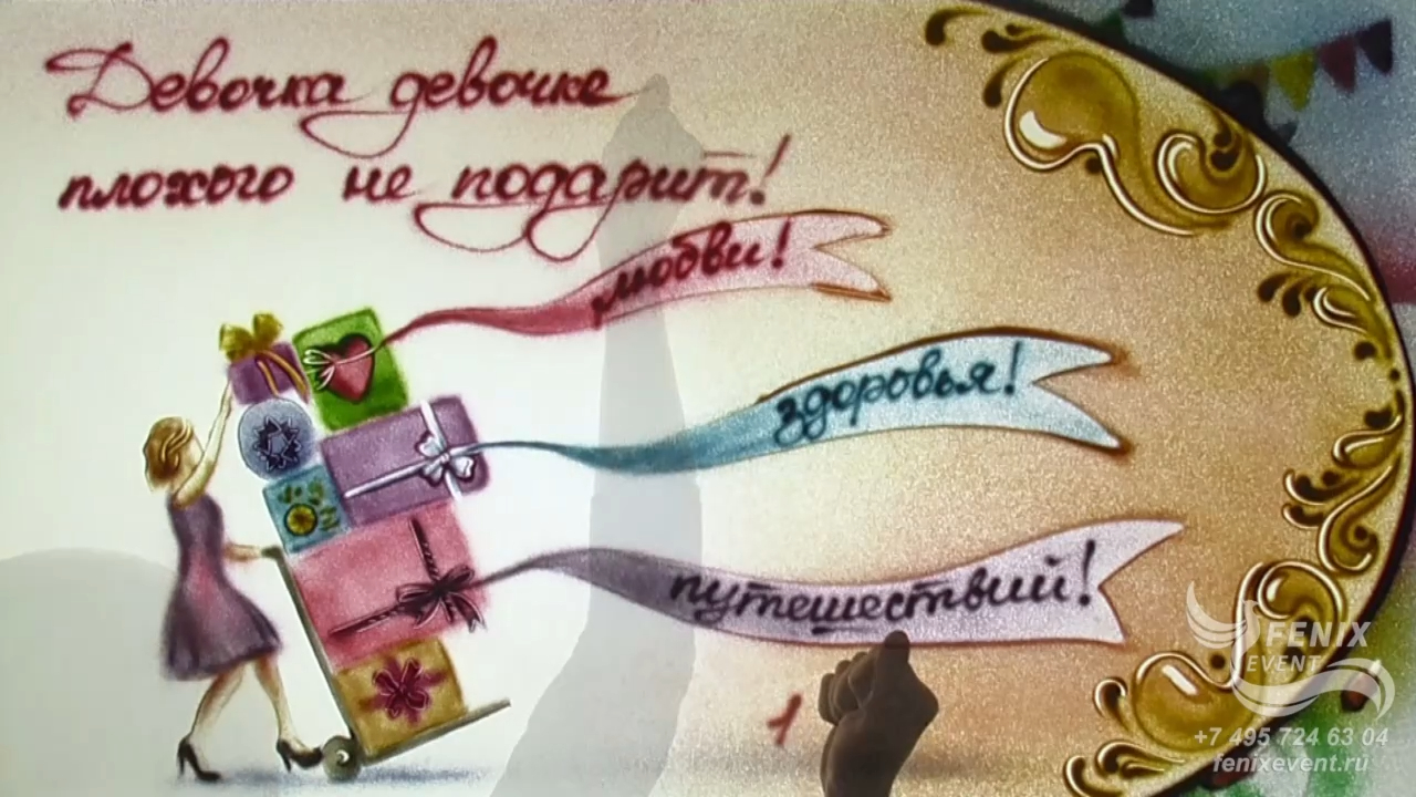 Заказать песочное шоу на юбилей и день рождения, праздник и свадьбу Москва - цветная видеооткрытка