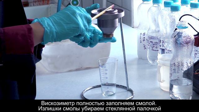 Норма: нормативные значения зависят от типа смолы Методика: стандарт группы компаний Kastamonu Выполнение: • Доводим температуру смолы до 20°С; • Для тестирования используется лабораторный вискозиметр ВЗ-4; • Вискозиметр полностью заполняется смолой; • Излишки смолы убираются стеклянной палочкой; • Одновременно включаем секундомер и открываем отверстия вискозиметра; • Время свободного протекания смолы в секундах является показателем вязкости смолы. Потребительские свойства: показатель является технологическим параметром при производстве смол и во время прессования плит МДФ.