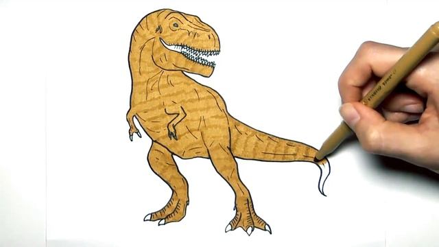 Нарисуй и раскрась Тираннозавра Рекса и Грушу грающую в динозавриков ! \\ Рисование для мальчиков!