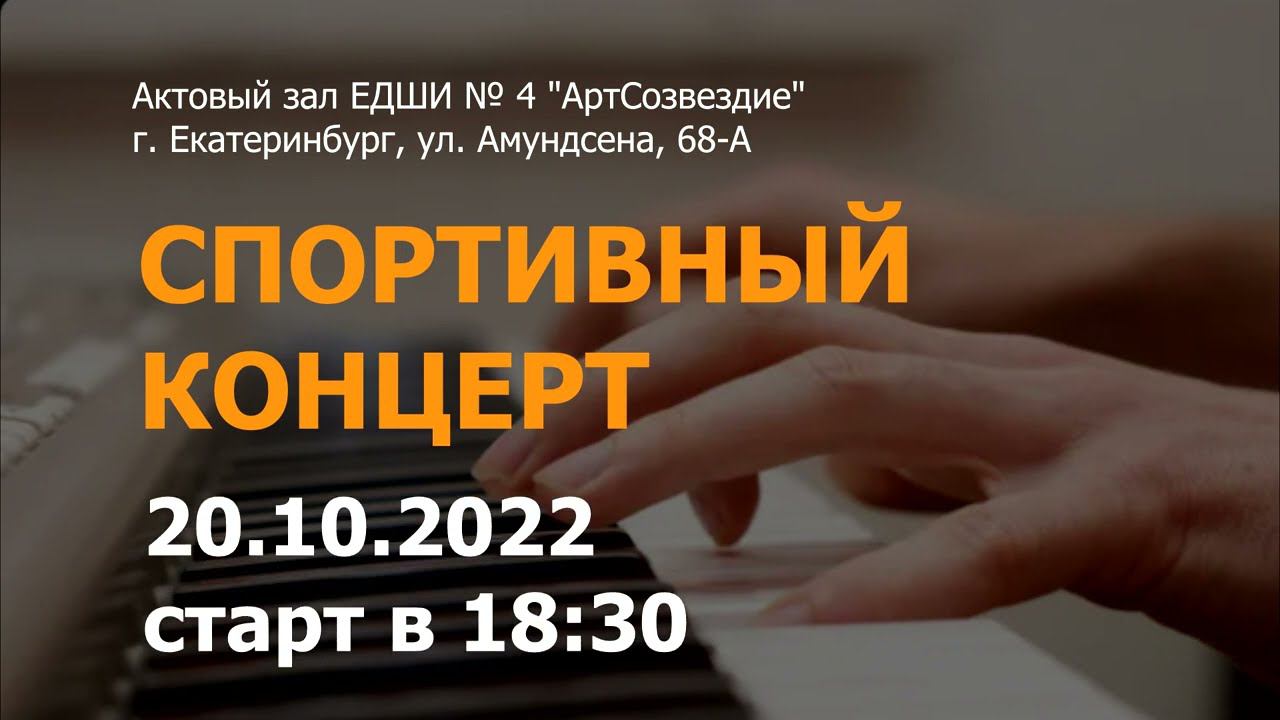 20 октября 2022 г. в ЕДШИ № 4 «АртСозвездие» под руководством Калининой Татьяны Николаевны и Ивановой Марины Александровны состоится Спортивный концерт. В исполнении учащихся музыкального отделения прозвучат этюды. Старт в 18:30 час. Приглашаем всех желающих. Вход свободный. #АртСозвездие #АртСозвездиеекатеринбург #Vegas Pro