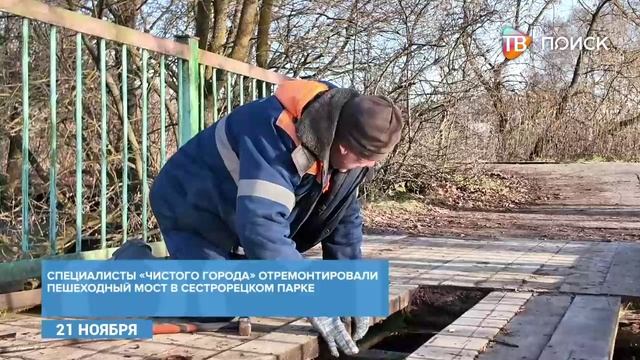 В Клину специалисты предприятия "Чистый город" отремонтировали мост в парке "Сестрорецкий"