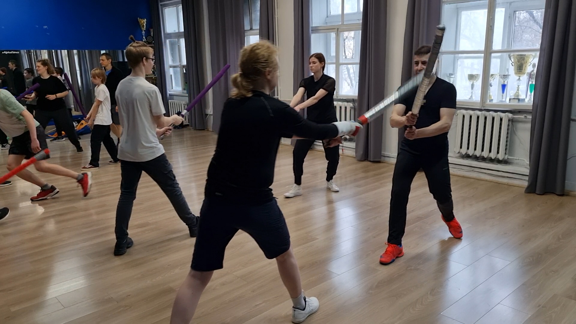 Урок синкендо в школе кендзюцу - показ, батман кругом шесть и удар по рукам на длинном мече