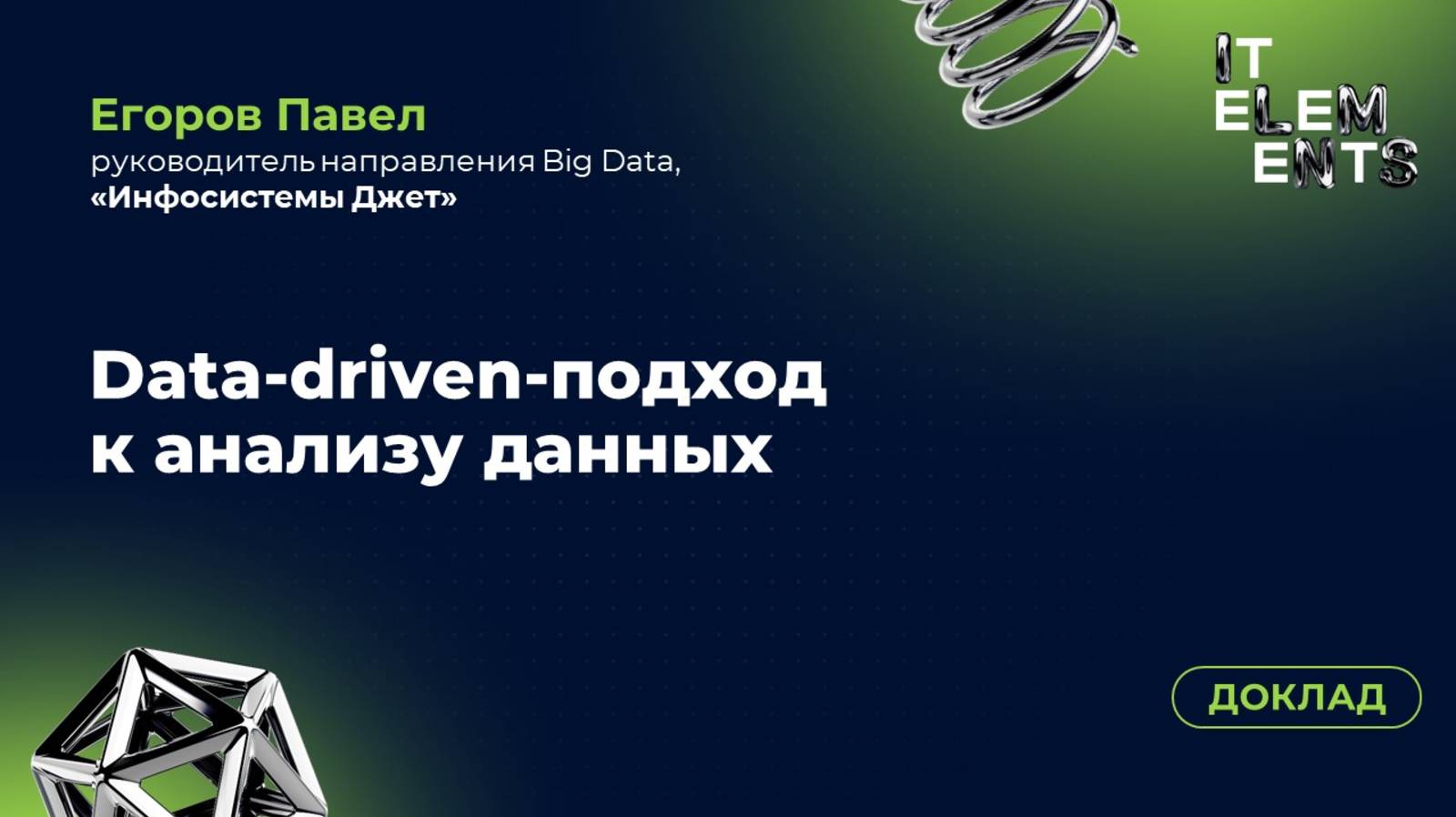 Что делать, когда данных становится больше, а качественных решений — нет? Павел Егоров разбирает большие вызовы data-подхода: • почему 40% времени data-специалисты тратят впустую из-за плохого качества данных • как дата-каталоги и глоссарии спасают от хаоса в показателях (один KPI считают шестью разными способами!) • зачем внедрять «дата контракты» между бизнесом и IT — как в поставках молока • почему Lakehouse вытесняет классические хранилища и когда переходить на него Смотрите, чтобы увидеть живые кейсы из промышленности, ритейла и банков. 00:01:00 — Рост данных: IoT, машинное зрение, телеметрия, ERP. 00:04:05 — Проблема №1: недостаток данных для обучения ML-моделей. 00:07:18 — Кейс: как в автосалонах один показатель продаж считали по-разному. 00:09:21 — Категорирование данных: ПДн, гостайна, коммерческая тайна. 00:10:36 — Производственные данные: почему «характеризующие» показатели никто не собирает. 00:12:18 — Ответственность за данные: КИП, финансы, ИБ. 00:13:34 — Интеграция Data Catalog с процессами разработки. 00:14:50 — Синергия с информационной безопасностью: поиск инцидентов через Data Lineage. 00:17:18 — Метрики эффективности: 40% трудозатрат экономят автоматизированные процессы. 00:18:22 — Архитектуры данных: Greenplum, Clickhouse, Lakehouse. 00:19:02 — Lakehouse на практике: S3 + Trino + Iceberg. 00:21:23 — Дата-контракты: как договориться с бизнесом о качестве данных. 00:25:00 — Автоматическое сканирование BI-отчётов и баз данных. 00:26:28 — Концепция дата-контрактов: по аналогии с поставками молока. 00:28:21 — CI/CD для данных: автоматические проверки кода и качества. 00:31:58 — Интеграция с Telegram: нотификации об ошибках в режиме реального времени. 00:33:14 — Почему PostgreSQL не подходит для аналитики. 00:34:29 — Greenplum vs. Lakehouse: когда что выбирать. 00:38:00 — DBT: шаблонизация разработки и переносимость кода. 00:39:48 — Кейсы: Авито (1+ ПБ), Тинькофф. 00:41:24 — Архитектура дата-платформы: ETL, Kafka, NiFi, Airflow. 00:43:01 — Виртуализация данных через Trino. 00:44:32 — REST-запросы через SQL: снижение порога входа. 00:45:55 — Пилот с ArenaData: API-коннекторы, стриминг, CDC. 00:48:08 — Итог: единая точка доступа, автоматизация, качество. 00:50:22 — Ответ про поиск скрытых зависимостей в данных. 00:53:02 — Внедрение Data Governance: бюрократия vs. коммуникация с C-level. #DataDriven #DataCatalog #BigData