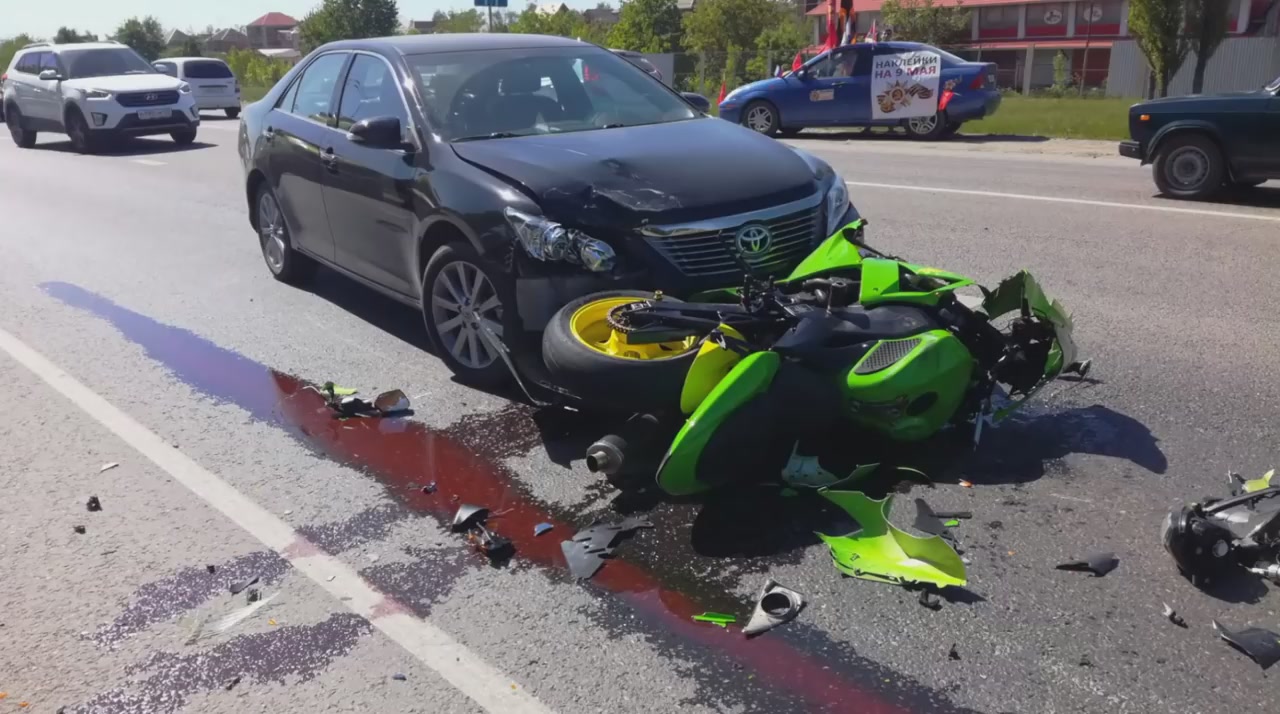 30.04.18 ДТП. Краснодар. Мотоциклист врезался в Тойоту пытаясь увернуться от пешеходов на дороге. #дтп #авария #мотоциклист #влетел #пешеходы