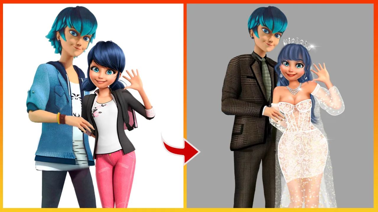 Идеальная пара: Романтическая свадьба Леди Баг и Луки - Раскраска для детей