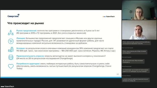 О том, как выстроена работа в сталелитейном холдинге с молодыми специалистами, о Лидерской программе, о стажировке IT-выпускников, о R&D, рассказывает эксперт АО «Северсталь» Юлия Голицына. Вы узнаете, что такое карьерные треки, как проходит отбор в Лидерскую программу с помощью ATS-системы «Поток Рекрутмент», о воронке отбора, об опросах кандидатов по итогам отбора, добавленных ценностях, выводах и новых идеях. Смотрите также: Привлекать и вовлекать сразу после вуза. Как работать с EJM молодых специалистов. Вебинар https://youtu.be/j7UKBqLDecE Лидеры нового времени: нанимать VS развивать внутри компании https://youtu.be/feuPRU462Ng Конференция «Поток» (бывший TalentTech). HR 2022: искусство заботы о людях и бизнесе. 18 ноября 2021 https://youtube.com/playlist?list=PLhdrGaRZ3KcpSWBoL-2Ozh9kVypDrCP_0 Читайте в нашем блоге: Как найти и развить лидеров нового времени https://potok.io/blog/hr-howto/leaders-development/ Как робот помог «Северстали» оценить 5 400 кандидатов на лидерскую программу https://potok.io/blog/hr-cases/severstal_case/ Как привлекать молодых и талантливых: пример подают «Точка Банк», «Райффайзен», «Danone» и другие https://potok.io/blog/hr-howto/attract_young_and_talented/ Поиск удаленных сотрудников. Как организовать подбор в распределенной команде https://potok.io/blog/hr-howto/search-for-remote-employees/ Попробуйте бесплатно, как нанимать сотрудников в два раза быстрее с «Поток Рекрутмент» https://potok.io/recruitment/