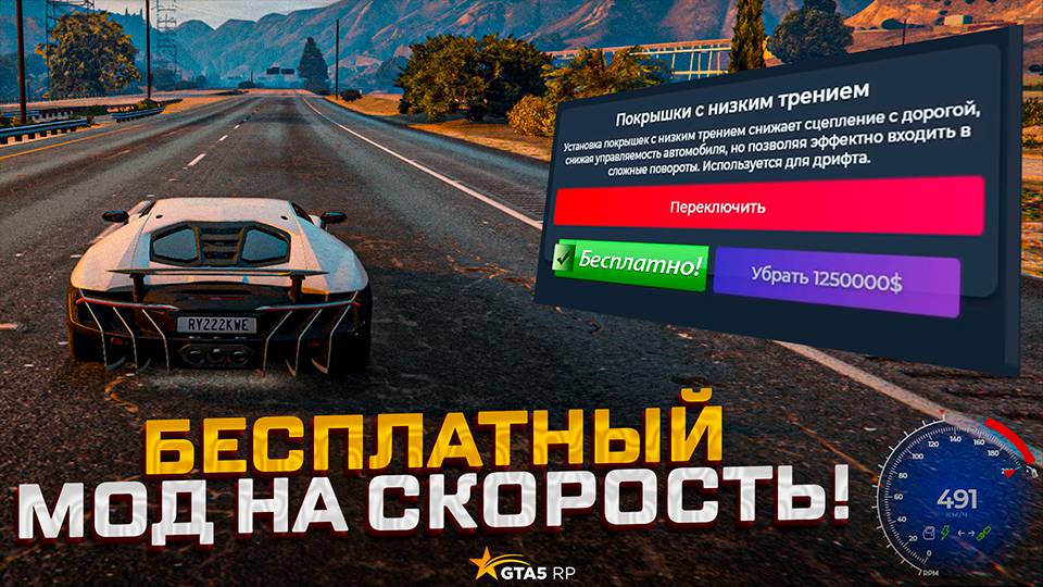 Бесплатный мод на авто который разгонит до 500 км/ч в gta 5 rp ! Баг на скорость !